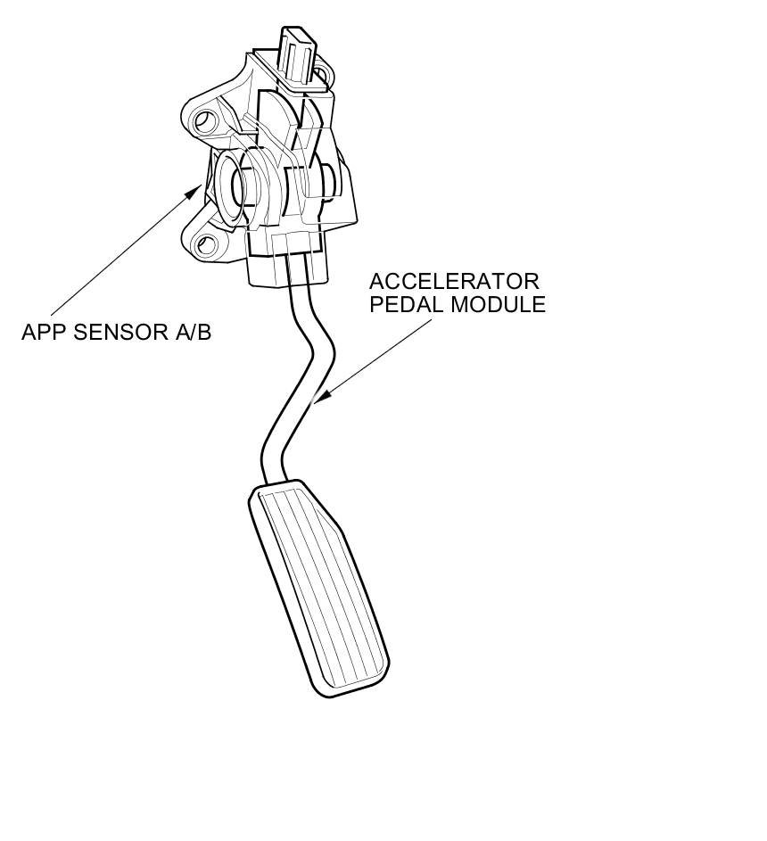 Acceleration control: When the accelerator pedal is pressed, the ECM/PCM opens the throttle valve depending on the accelerator pedal position (APP) sensor signal.
