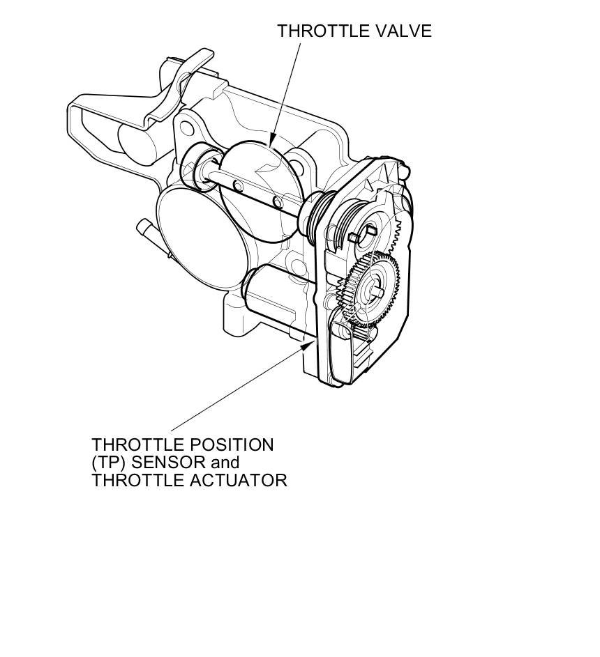 The electronic throttle control system consists of the throttle actuator, TP sensor A/B, the APP sensor A/B, the ETCS control relay, and the ECM/PCM.