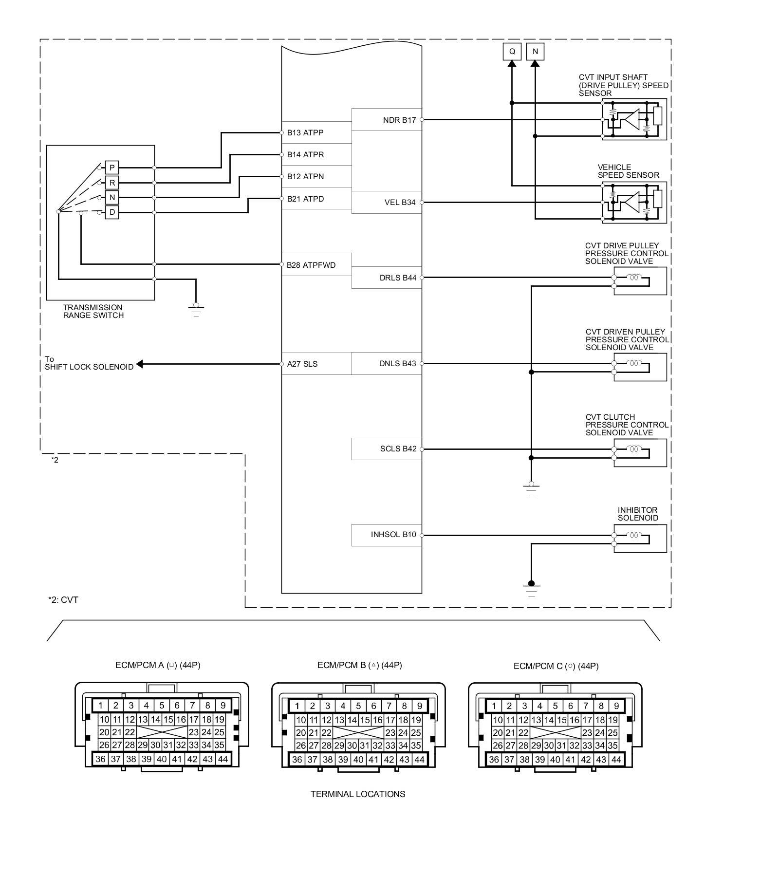ECM/PCM Inputs and Outputs at ECM/PCM Connector B (triangle) (44P)