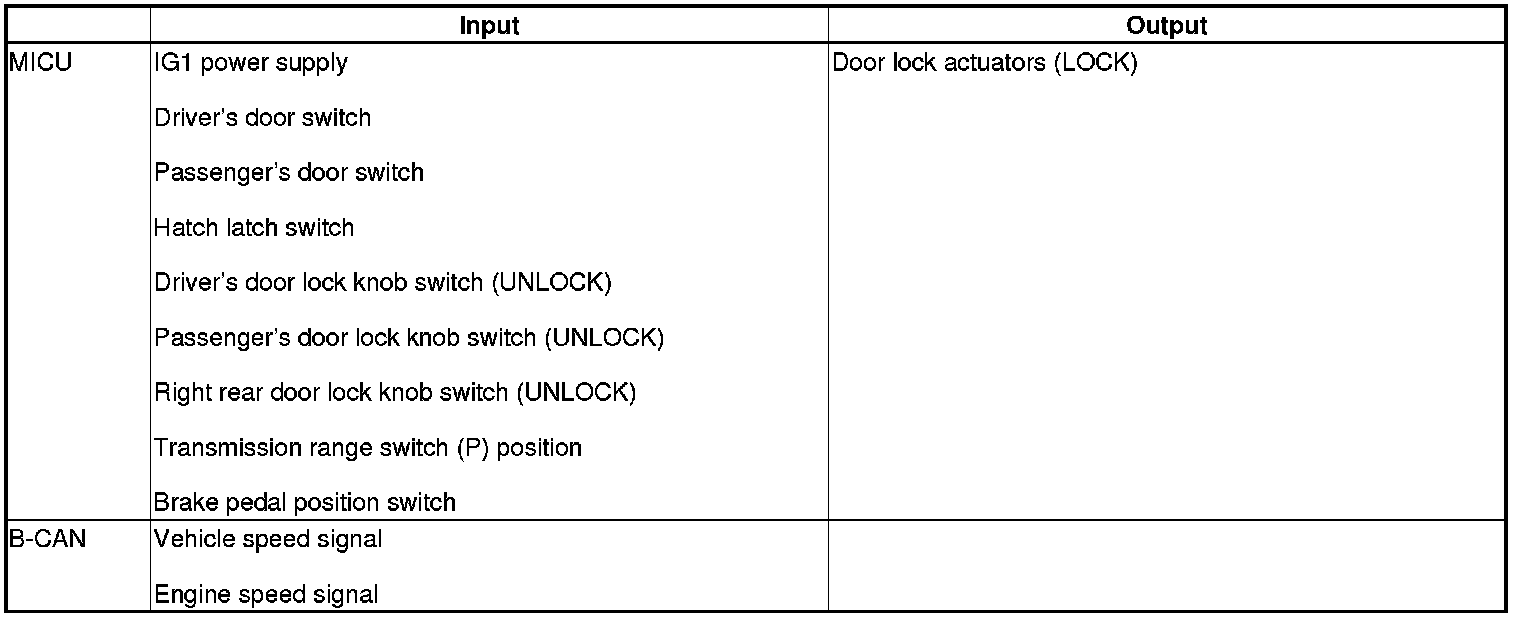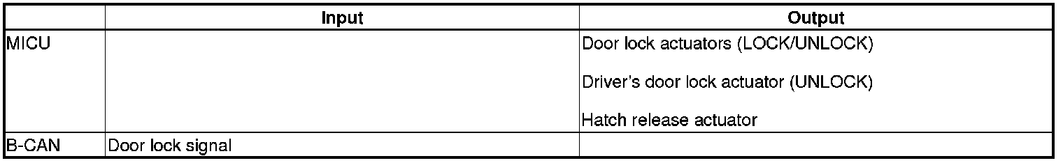 The MICU controls the door lock actuators based on inputs from each switch and B-CAN signals.