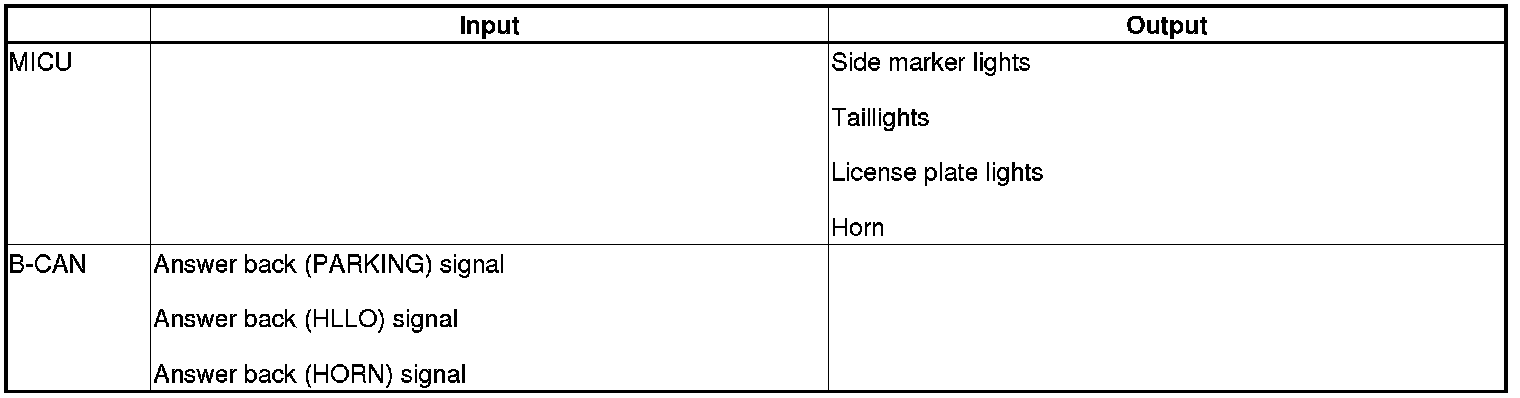 The MICU controls the exterior lights and the horn based on keyless signals sent by B-CAN.