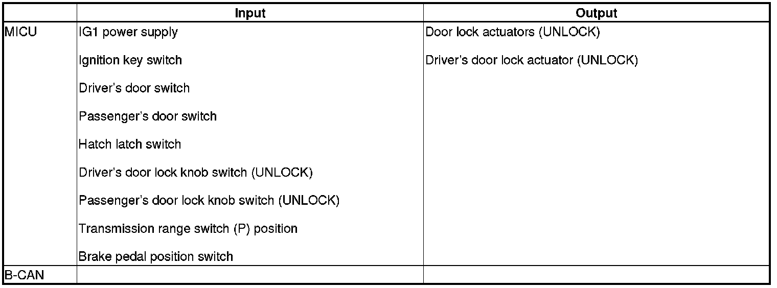 When any of the data from the B-CAN circuit cannot be received within a specified time, or an unusual combination of data is recognized, the MICU moves to the software fail-safe mode. The data that was not received is forced to a pre-programmed value.