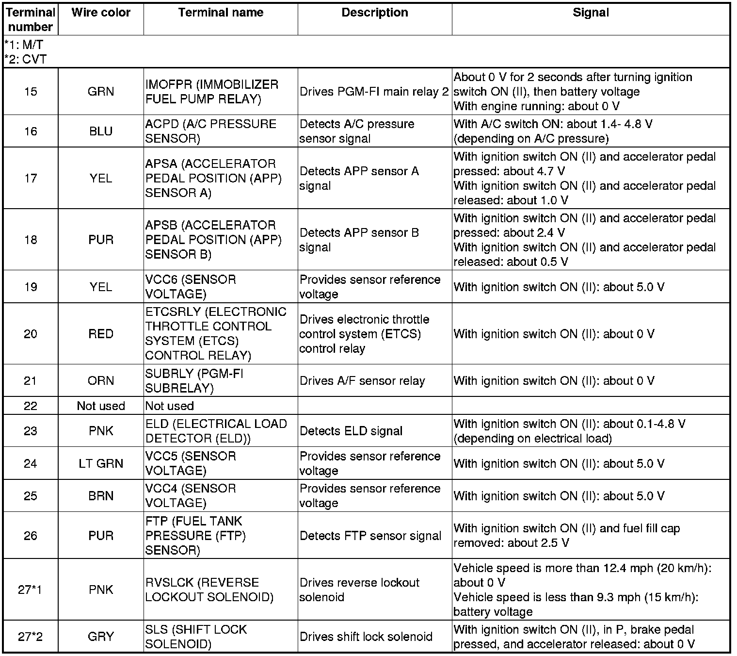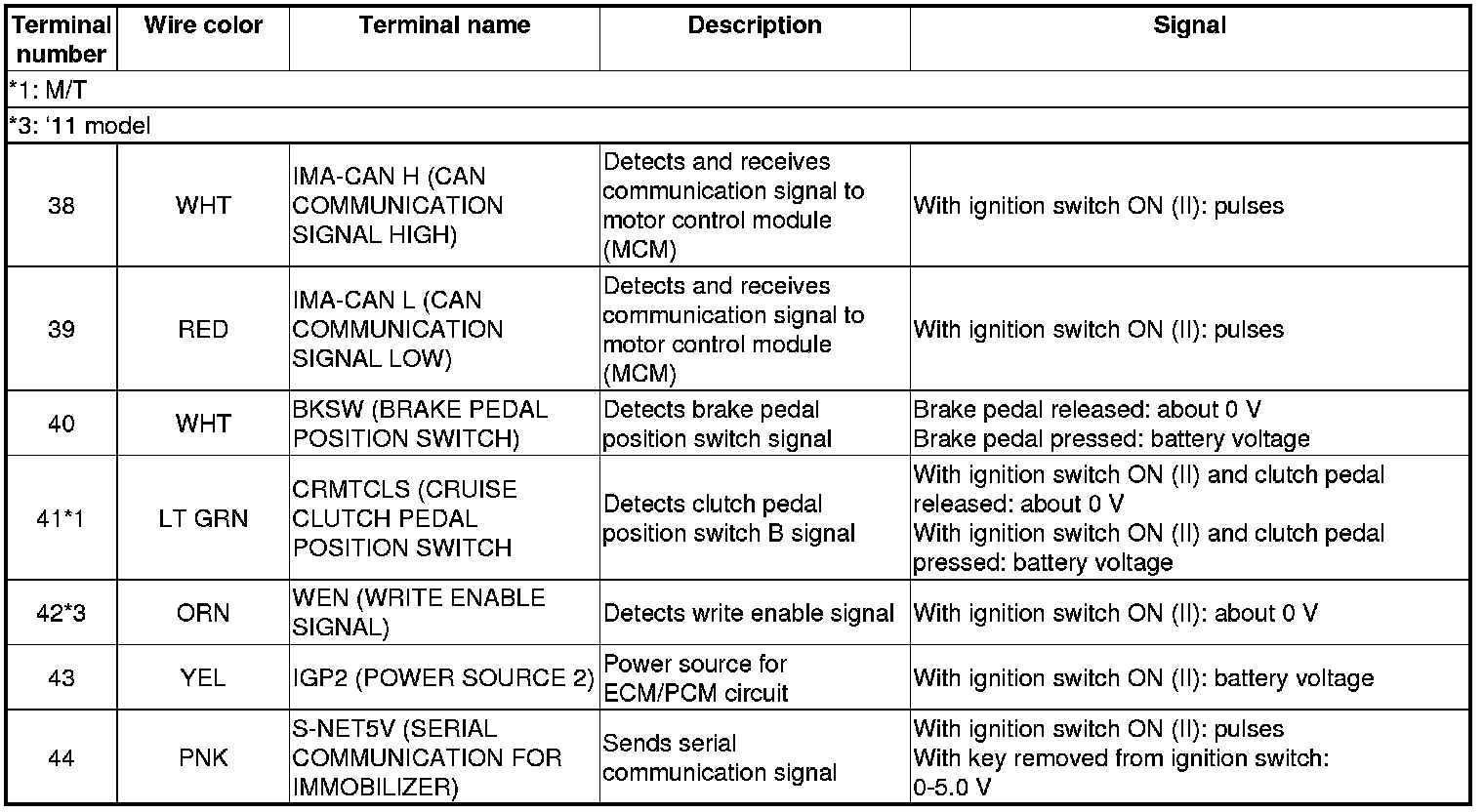 ECM/PCM Inputs and Outputs at ECM/PCM Connector B (triangle) (44P)