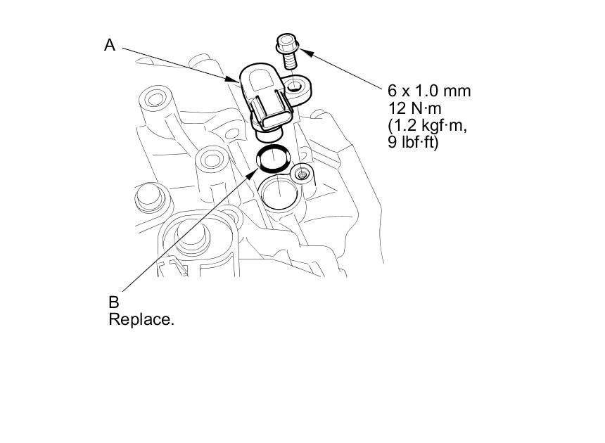 8. Remove the vehicle speed sensor (A) and the O-ring (B).