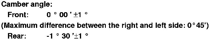 - If the measurement for the rear camber is not within the specifications, check for bent or damaged suspension components.