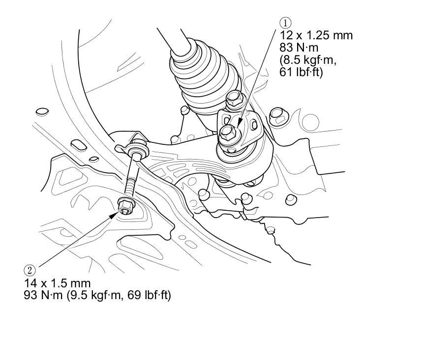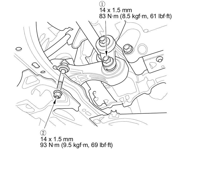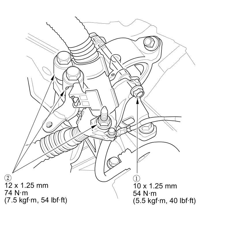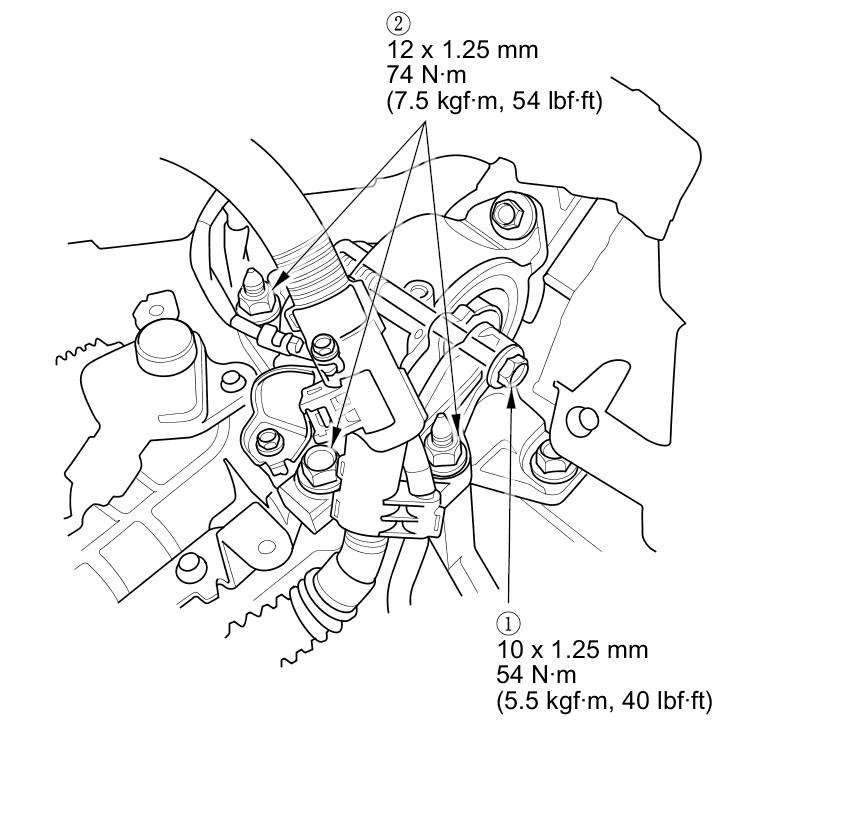 17. Tighten the torque rod mounting bolt and nut in the numbered sequence shown.