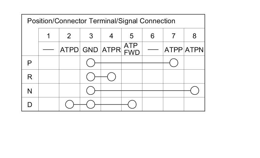 4. The transmission range switch test is completed if the test results are OK. If there is no continuity between any terminals, go to step 5.