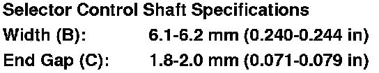 6. If the measurement of the selector control shaft end is within the standard, replace the transmission range switch Service and Repair. If the measurement is out of the standard, repair the selector control shaft end, then install the transmission range switch Service and Repair, and recheck the transmission range switch continuity.