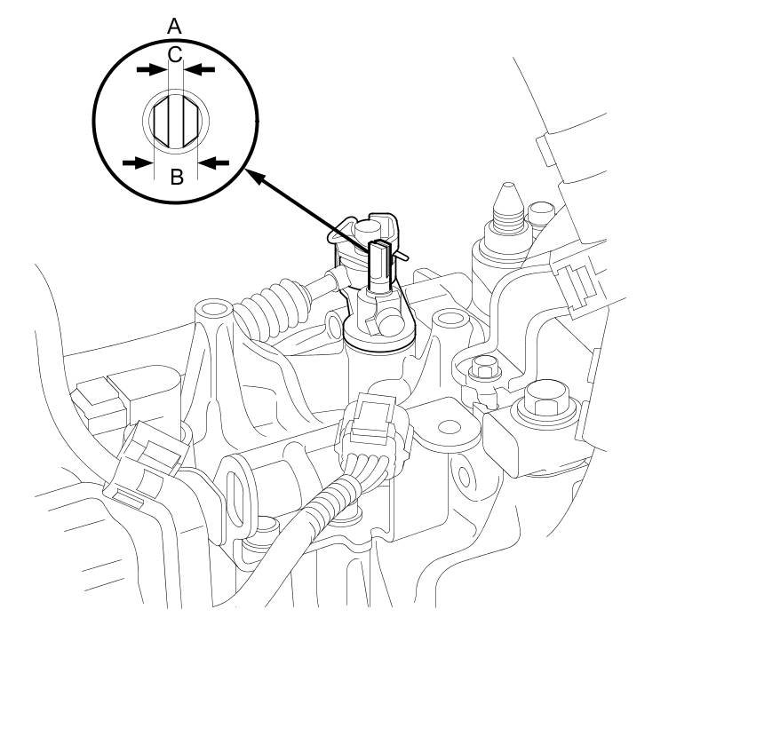 5. Remove the transmission range switch Service and Repair, and check the end of the selector control shaft (A).