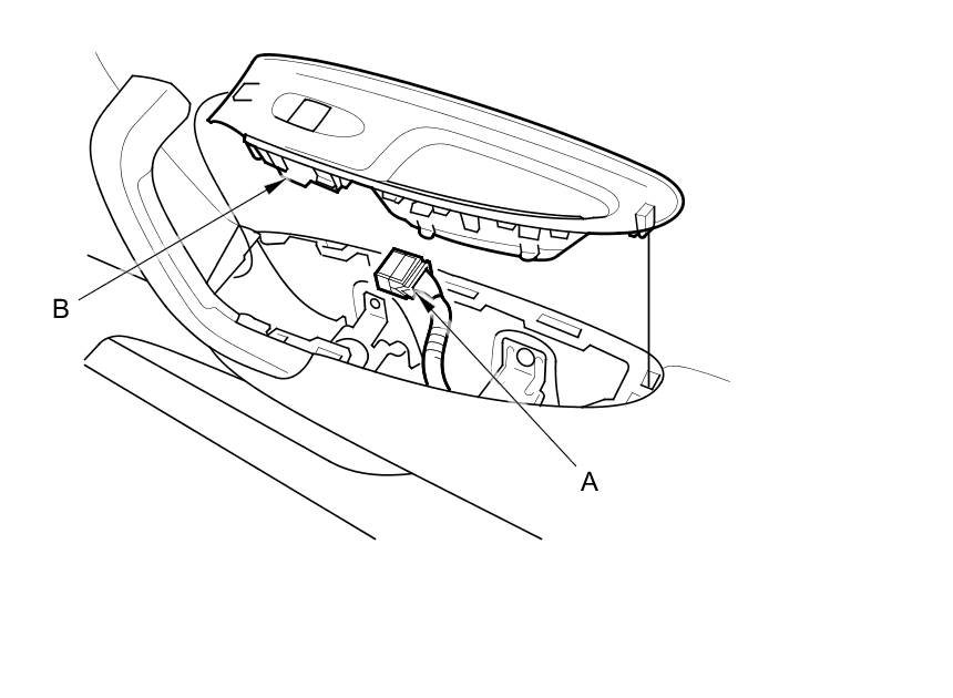 3. Disconnect the 8P connector (A) from the passenger's power window switch (B).