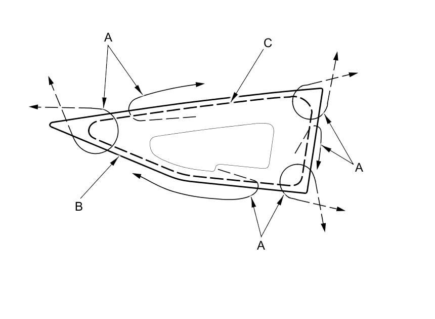 7. Scrape smooth the old adhesive with a putty knife until there is a thickness of about 2 mm (0.08 in) on the bonding surface around the entire quarter glass opening flange: