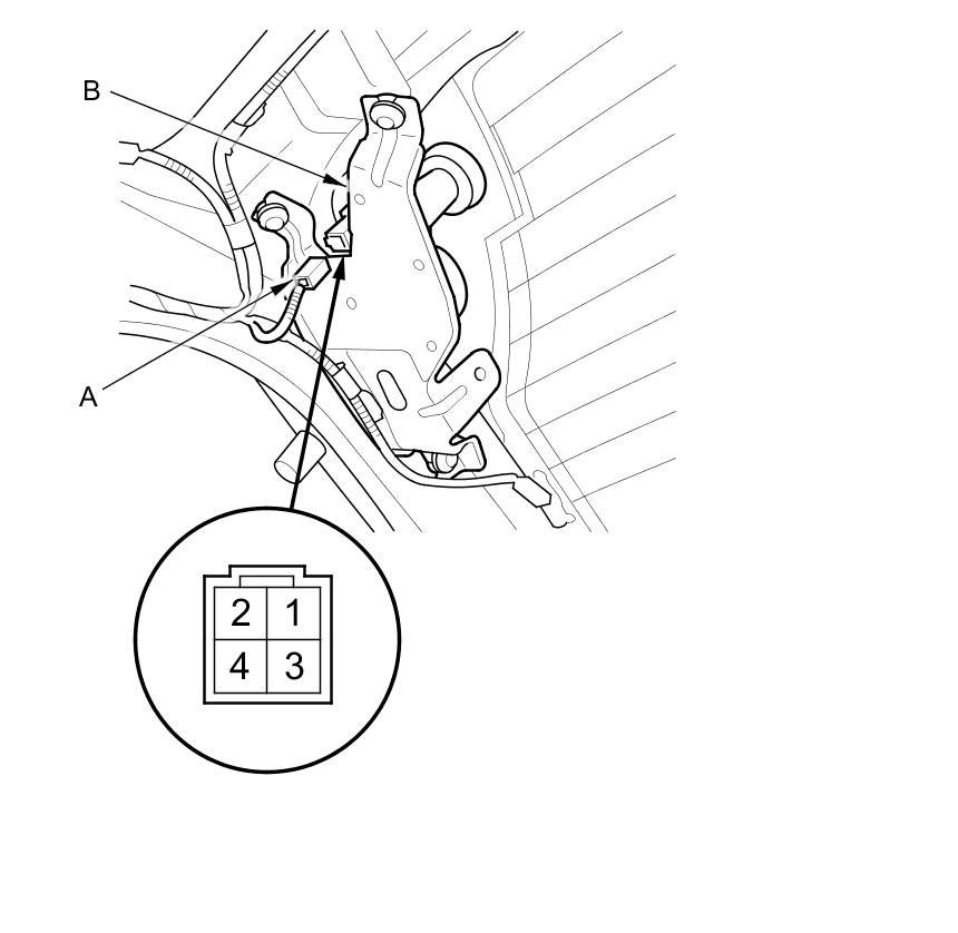 2. Disconnect the 4P connector (A) from the wiper motor (B).