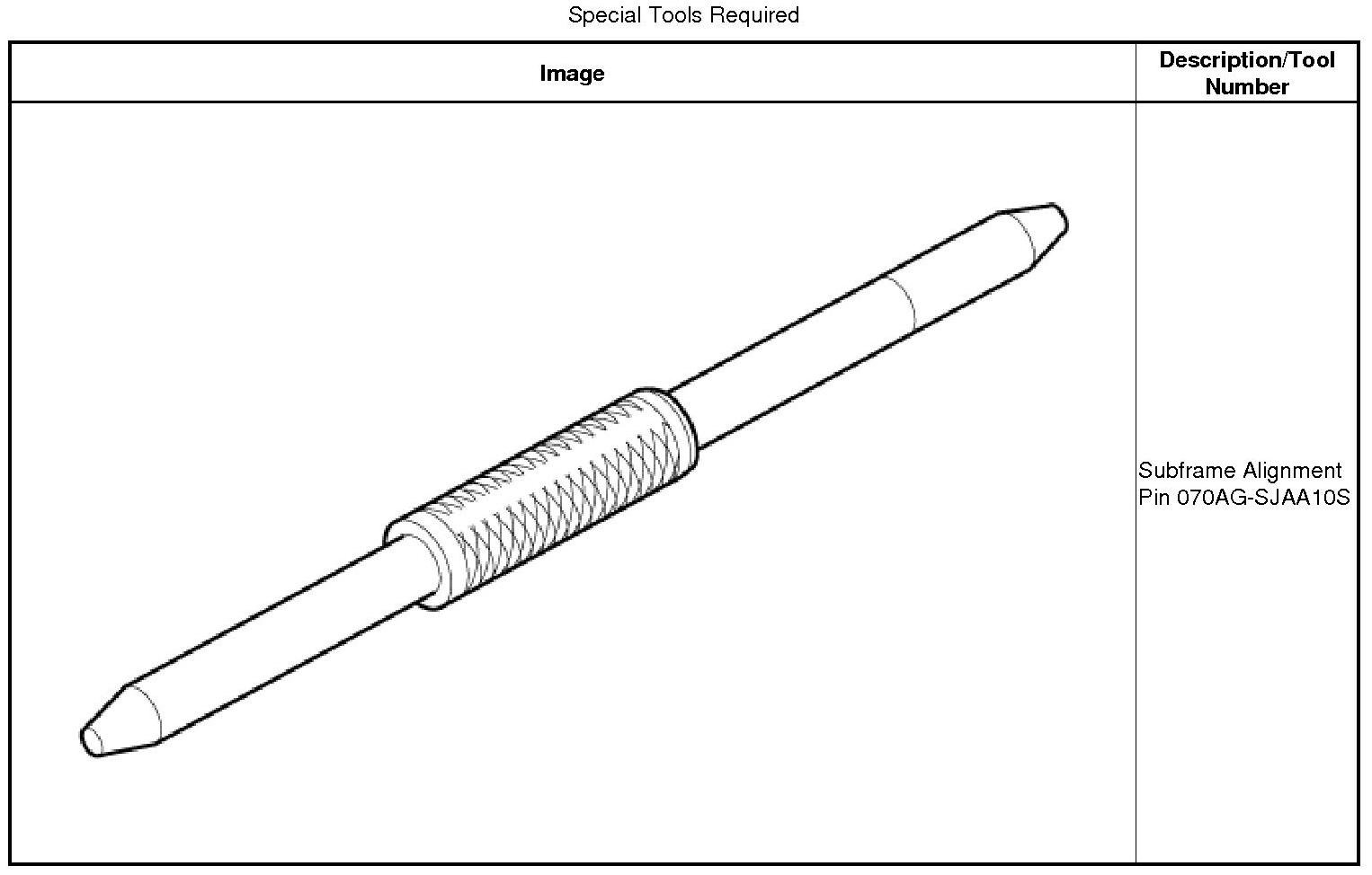 * Align the front subframe with the subframe alignment pin.