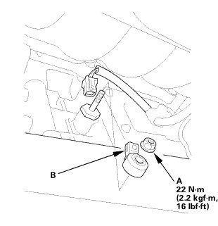 NOTE: When installing the knock sensor, make sure the direction of the sensor connector (B) is facing up.