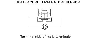 4. If the resistance is not as specified, replace the heater core temperature sensor.