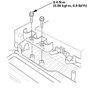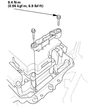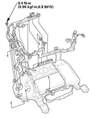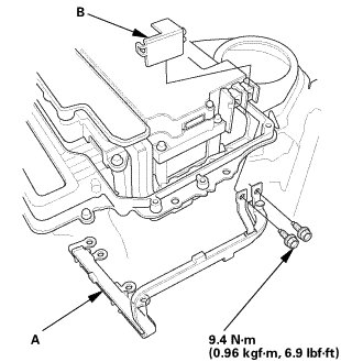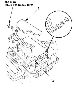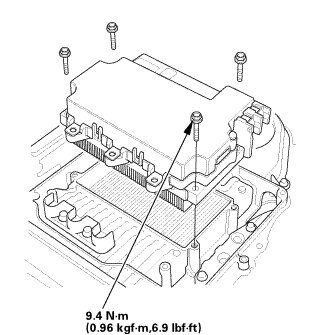 9. Install the phase motor current sensor (A) and the bus bars (U, V, W).