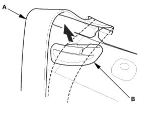 2. Release the rear center seat belt (A) from the rear center seat belt guide (B).
