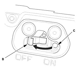 3. Turn the battery module switch (B) OFF, then check that the bolt (C) is showing.