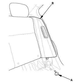 1. Remove the bolt (A) securing the rear seat side bolster (B).