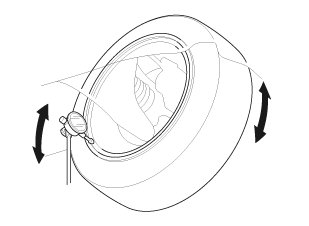 6. If the wheel runout is not within the specification, check the wheel bearing end play, and make sure the mating surfaces between the brake disc or the brake drum and the inside of the wheel are clean.