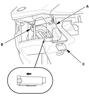 3. Remove the TPMS control unit (B) from the bracket (C).