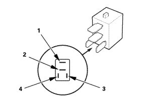* There should be continuity between terminals No. 1 and No. 2 when battery power is connected to terminal No. 3, and battery ground is connected to terminal No. 4.