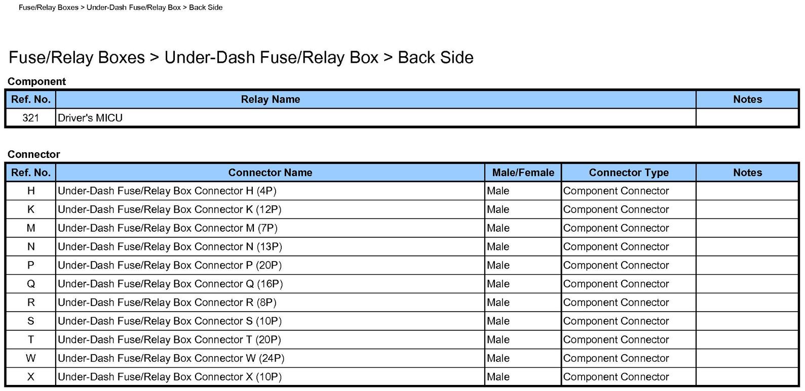 Fuse/Relay Boxes Locations Under-Dash Fuse/Relay Box - Back Side