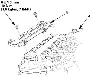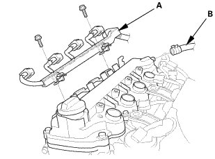 1. Disconnect the intake air duct (A) from the air cleaner (B).