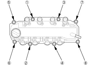 11. Torque the bolts in three steps. In the final step, torque all bolts, in sequence, to 10 Nm (1.0 kgf, 7 lb.ft).