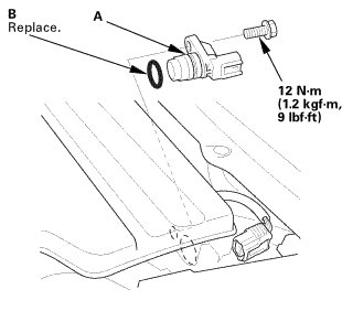 1. Install the CMP sensor (A) with a new O-ring (B).