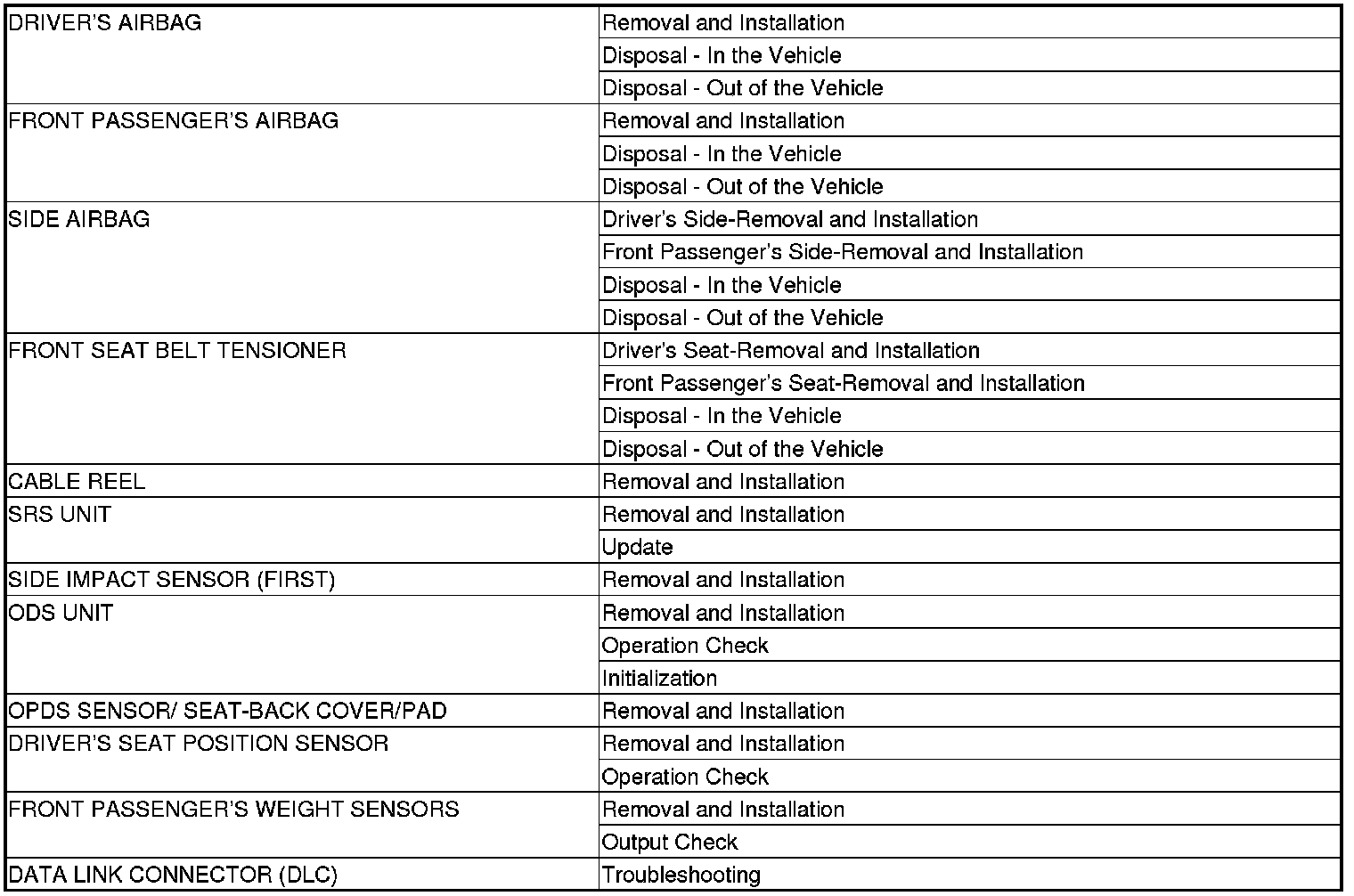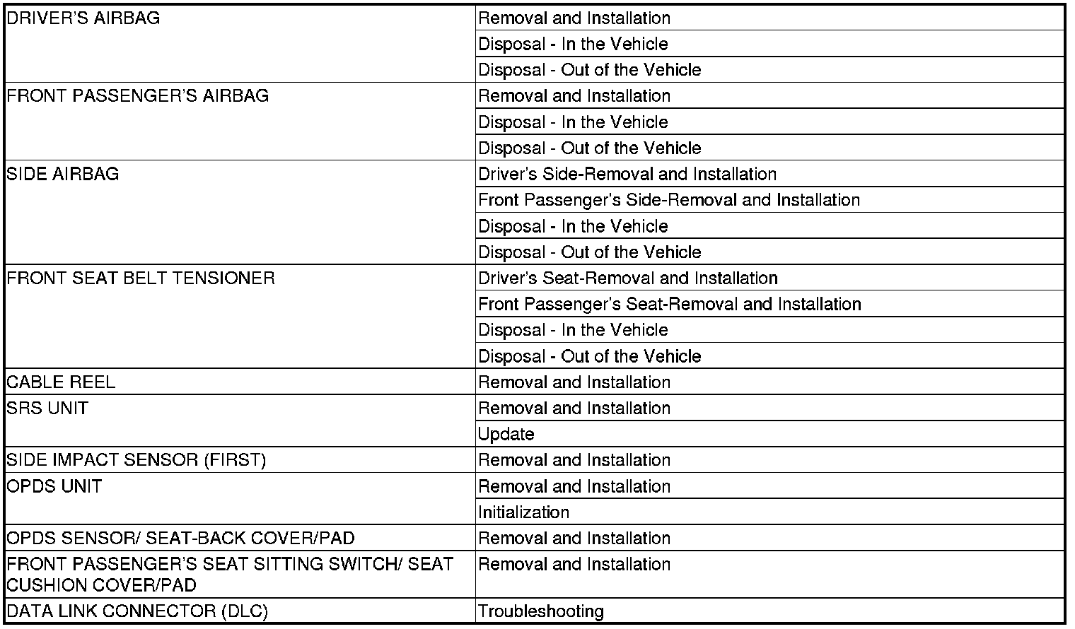 SRS Component Location Index