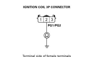 -NO- Repair an open in the PG1, PG2 wire between the ignition coil and ground G101.