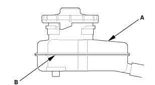 3. Make sure the brake fluid level in the reservoir tank (A) is at the middle of the tank line (B).