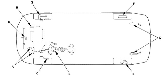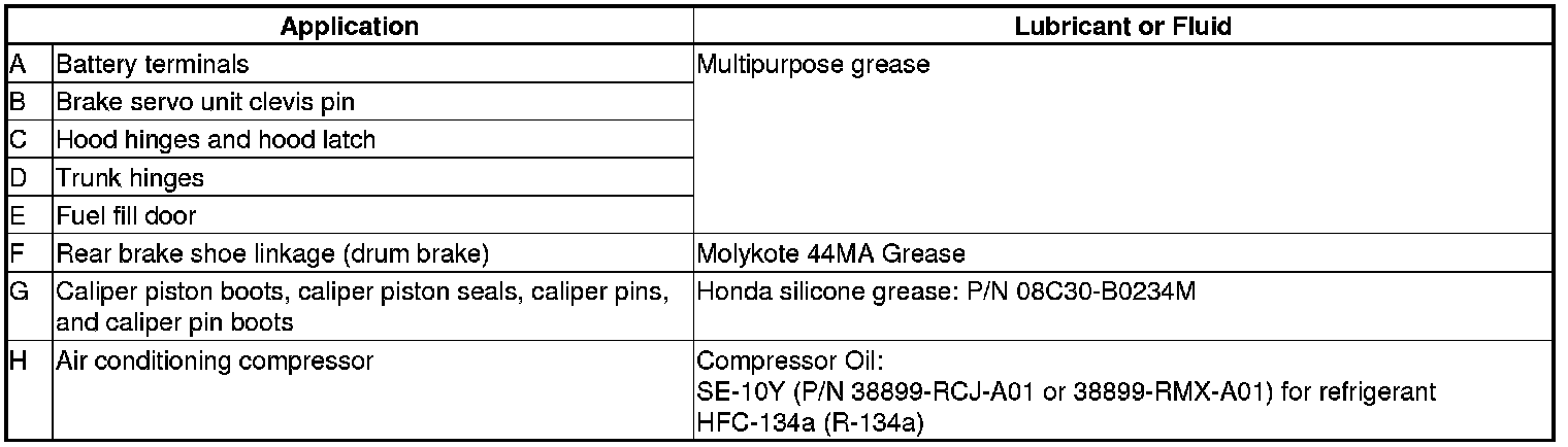 * Lubricate the following areas using the recommended lubricants and fluids.