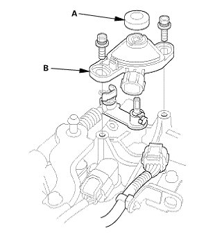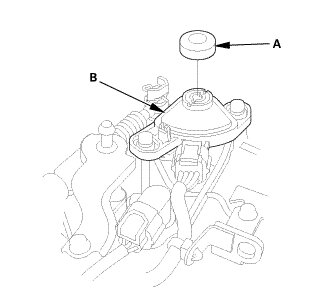 7. Install the selector control shaft cover (A) on the transmission range switch (B).