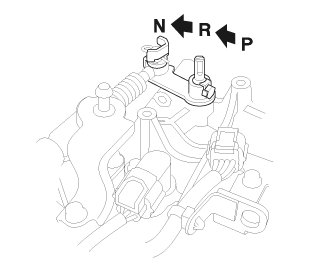 NOTE: Be sure to use a 2.0 mm (0.079 in) feeler gauge blade or equivalent to hold the transmission range switch in the N position.