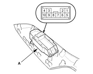 2. If the continuity is not as specified, replace the power window switch (A).