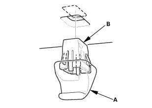 4. If necessary, remove the sunvisor holder (A) from the holder grommet (B).