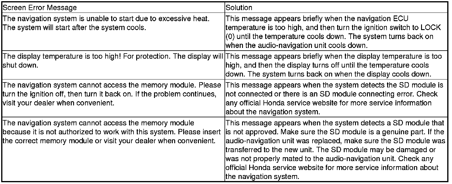 Navigation System Error Messages