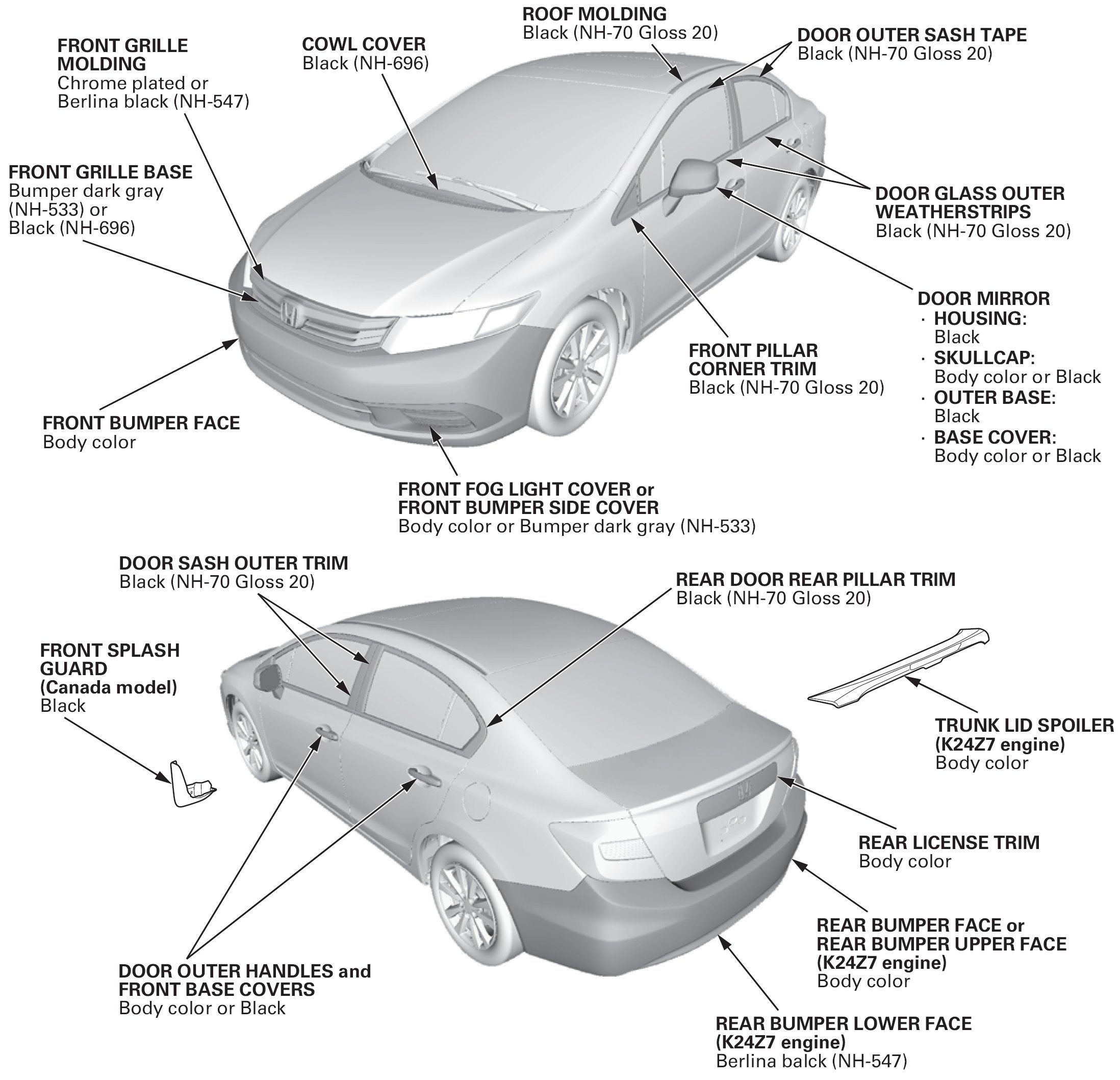 - K24Z7 engine: Apply black paint to the visible surface of the rear jack-up bracket and the rod after repairing and painting (except vehicles painted with black color).