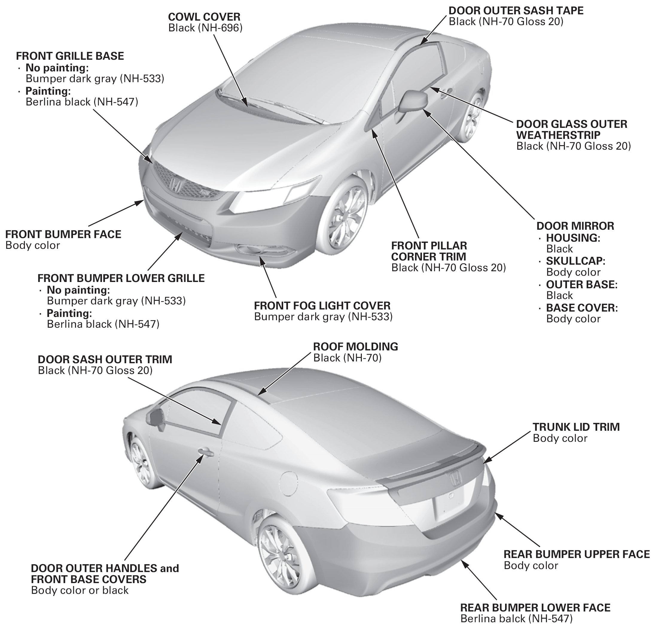 - Apply black paint to the visible surface of the front wheelhouse and the rear wheelhouse after repairing and painting (vehicles painted with white or silver color).
