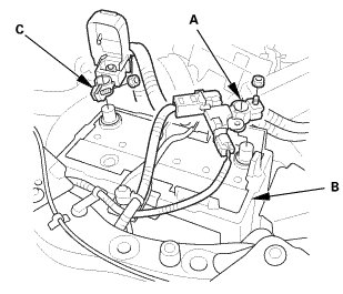 3. Connect the negative cable and battery sensor (C) to the battery.