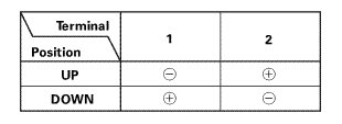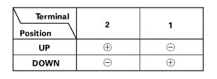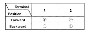 2. Test each motor by applying battery power and ground to the motor connector terminals according to the table.