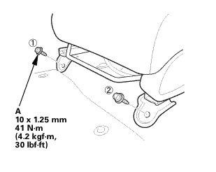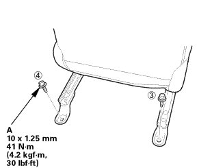 * Tighten the seat mounting bolts to the specified torque in the sequence shown. Slide the seat all the way back and tighten 1 and 2, then slide it forward and tighten 3 and 4.