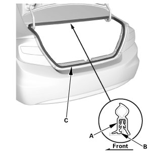 1. Remove the trunk lid weatherstrip (A) by pulling it off.