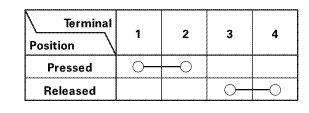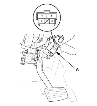 3. If the test results are not as specified, adjust the pedal position switch (A), then check. If the results are still not as specified, replace the pedal position switch.