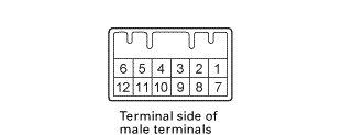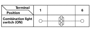 2. Check for continuity between cruise control combination switch 12P connector terminal No. 1 and No. 6 according to the table.