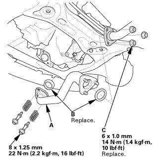 1. Install exhaust pipe A. Use new gaskets (B) and new self-locking nuts (C).