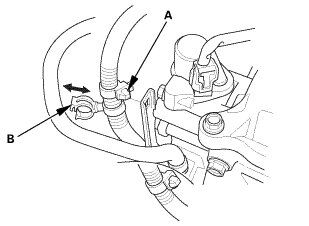 7. Connect the EVAP canister hose (A), the brake booster vacuum hose (B), and the PCV hose (C).