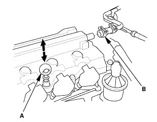 1. Remove the cam chain guide (A) and the cam chain tensioner arm (B).